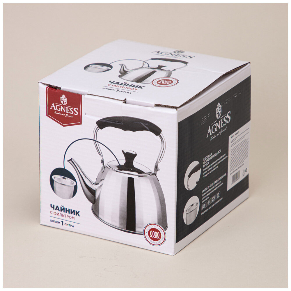 Чайник Agness "Тюдор", с фильтром, 1 л, для всех видов плит, складная ручка