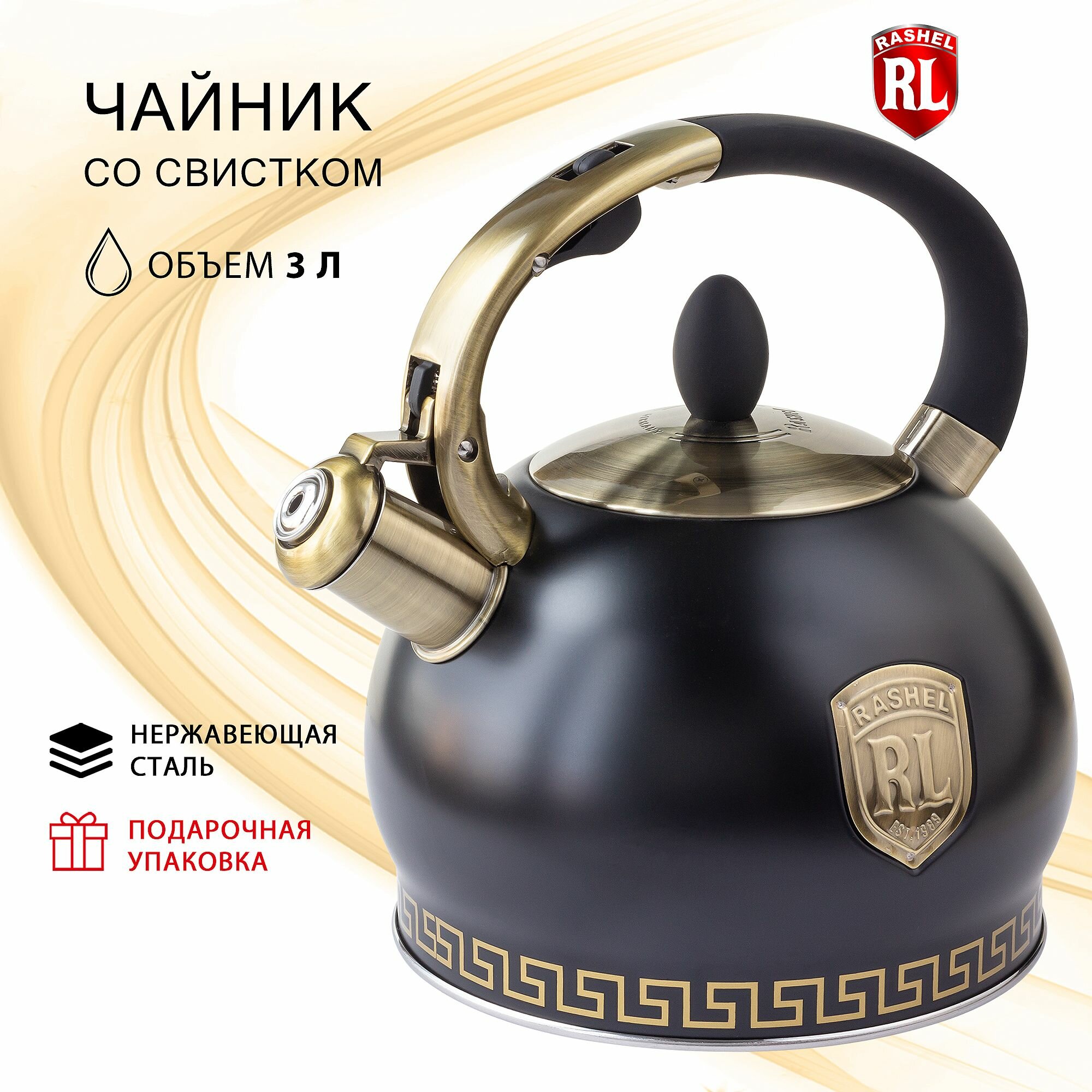 Чайник для плиты RasheL 3 л со свистком, из нержавеющей стали, ручка с механизмом