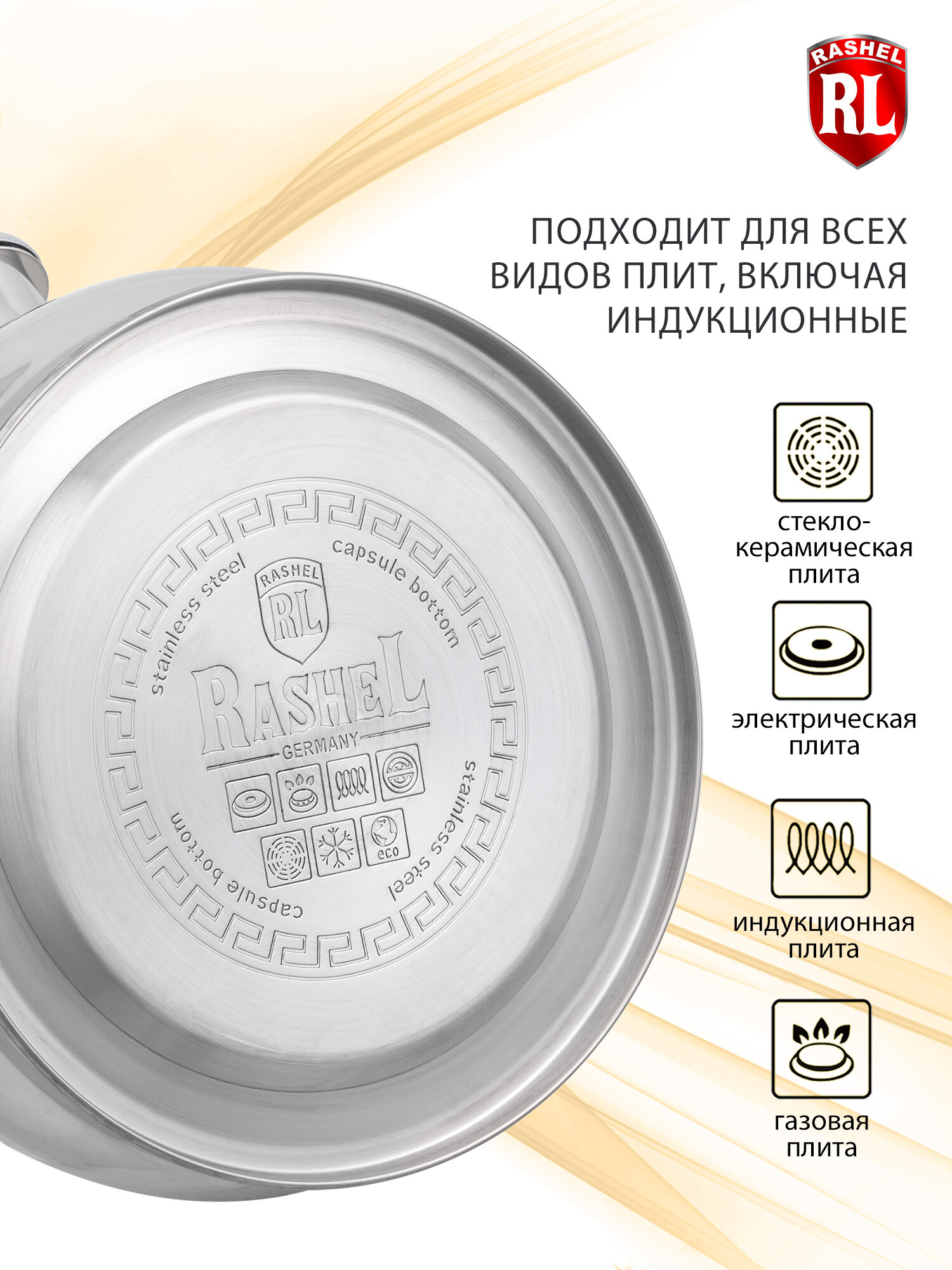 СохранитьЧайник для плиты RasheL 3 л со свистком интересное: