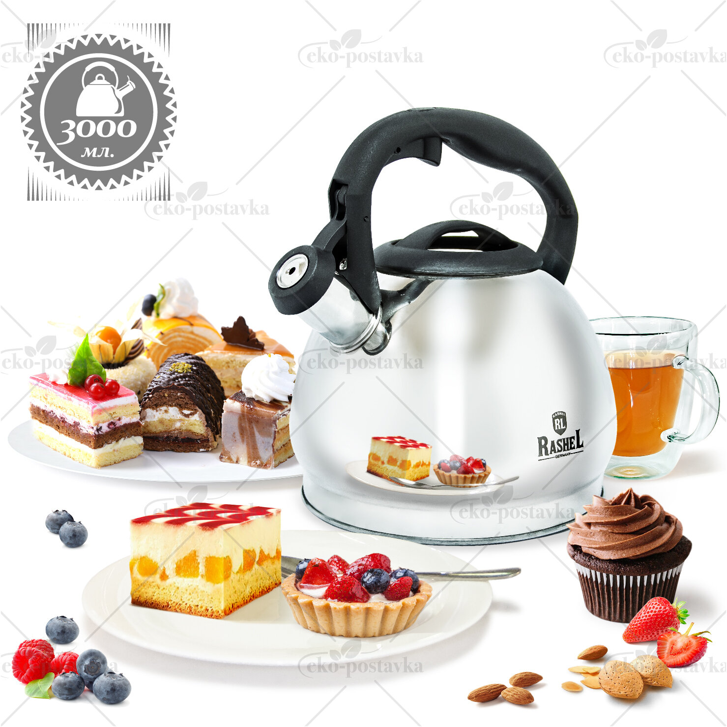 Чайник из нержавеющей стали со свистком Rashel 3 литра для газовой, электрической и индукционной плиты