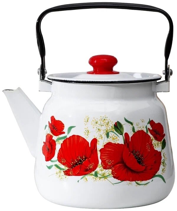 Чайник 3,5 л сфер Маки белый с кнопкой С2716.3*67 (4) с рис интересное: