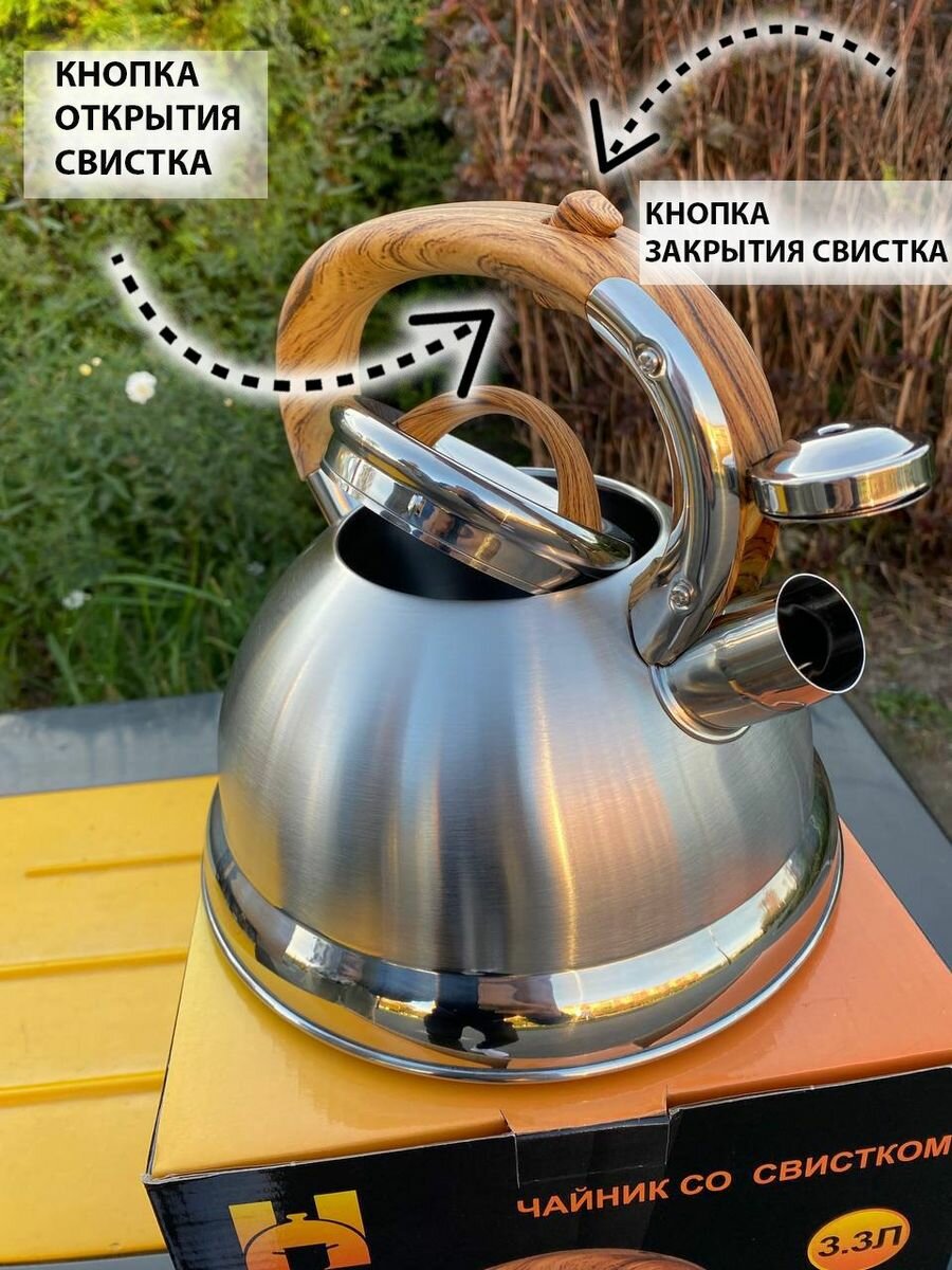 Чайник для плиты со свистком нержавеющая сталь ,3.3 Л c деревянной ручкой интересное: