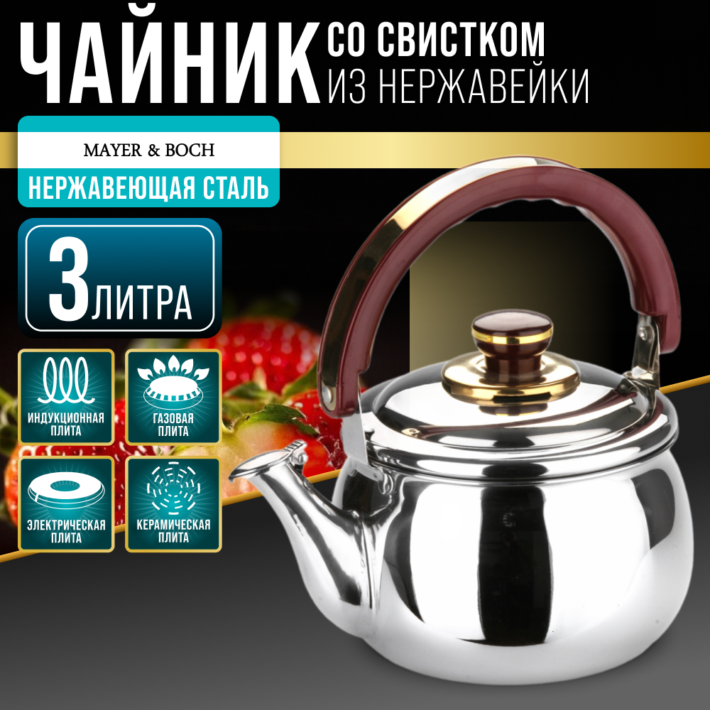 Чайник для плиты MAYER&BOSH, стальной, 3л