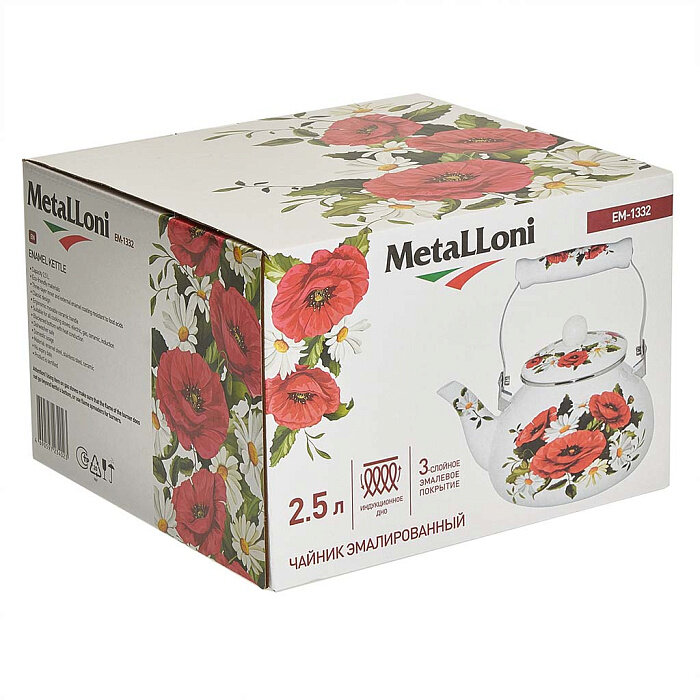 Чайник Эмаль 2.5Л Metalloni со Свистком Маки для Всех Видов Плит 6 EM-1321