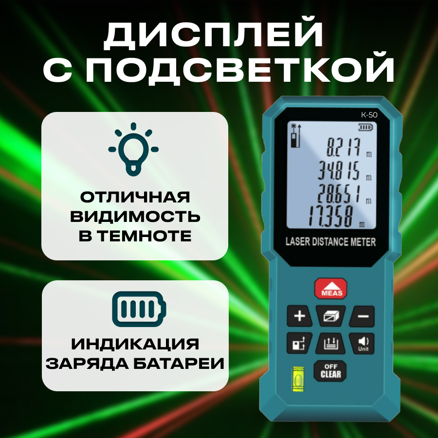Лазерная рулетка с чехлом "Enstroll" 50м/1,5мм, дальномер, лазерный интересное: