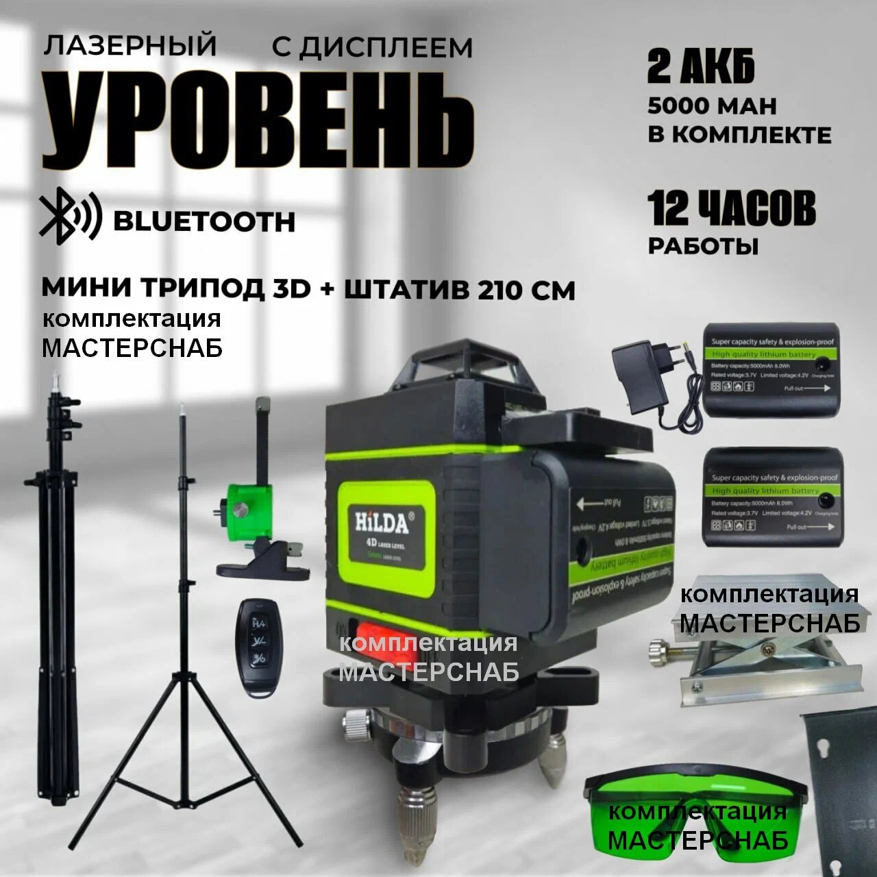 Купить Лазерный нивелир HiLDA 4D 2х 5000mAh + штатив 210 см + 3D мини-трипод