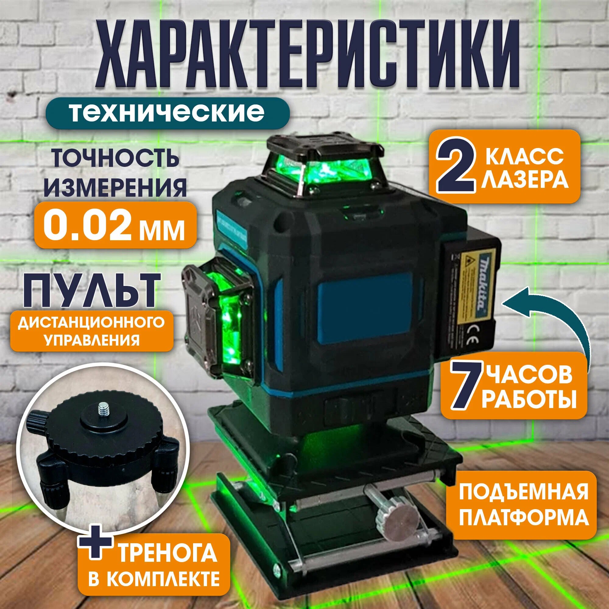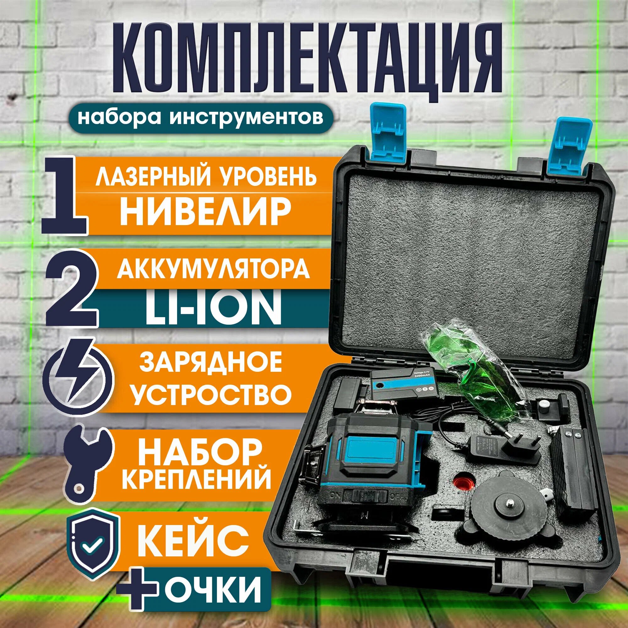 Лазерный уровень нивелир 4D 16 линий, в кейсе. интересное: