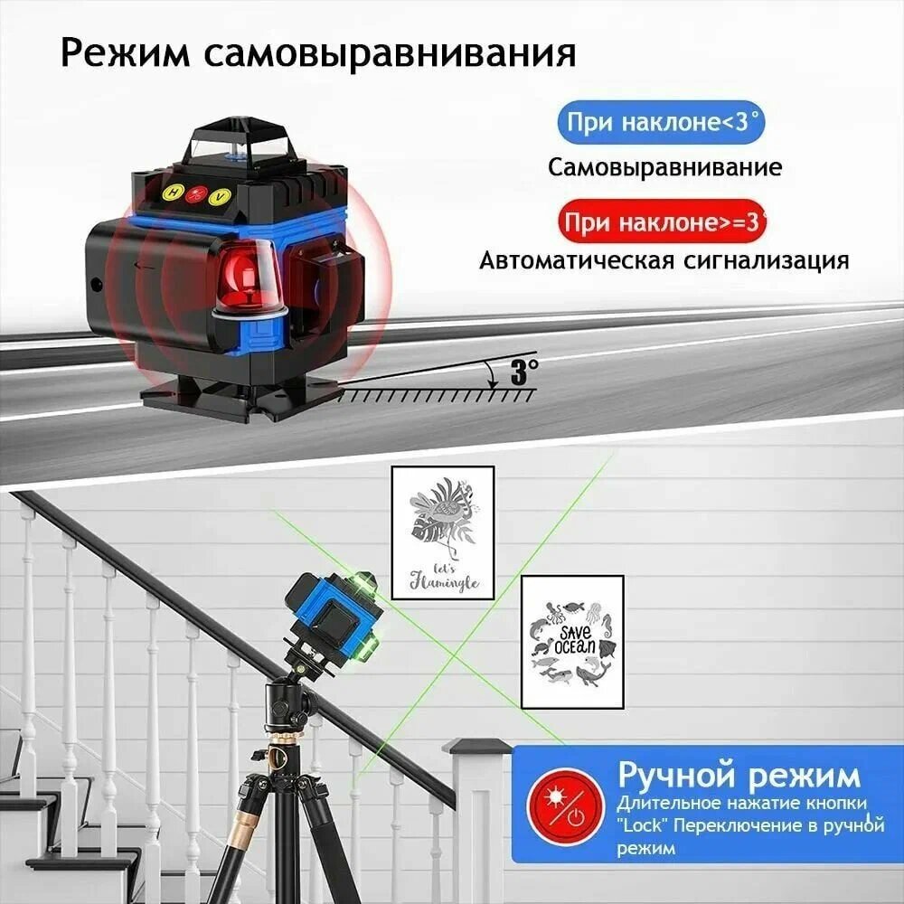Профессиональный Лазерный уровень (нивелир) LT L16-360A 4D 16 линий.