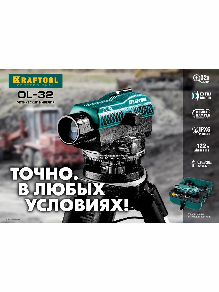 KRAFTOOL 122 м, увеличение 32Х, оптический нивелир OL-32 34520 интересное: