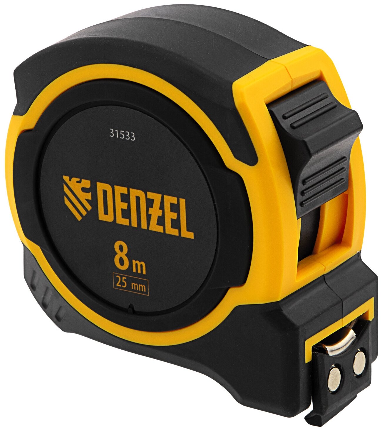 Купить Рулетка Denzel 8м х 25ммдвухкомп. корпус, магнитный обрезиненный зацеп 31533