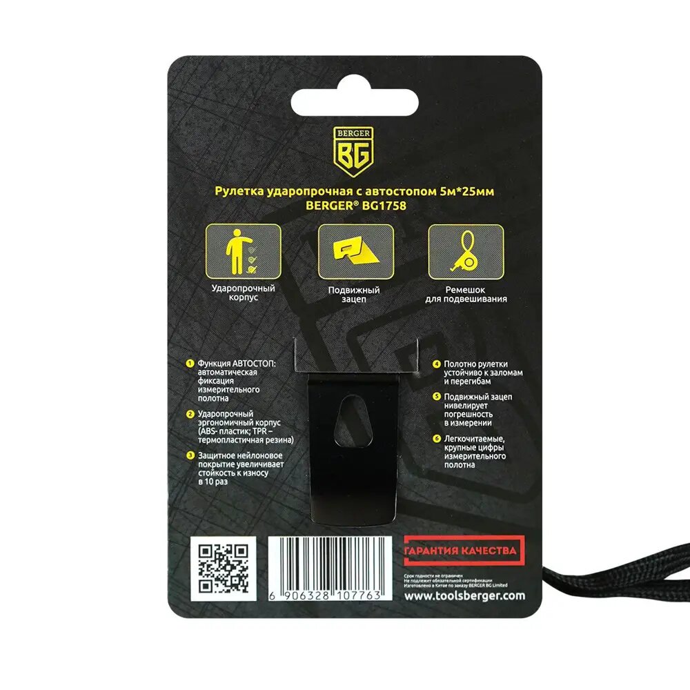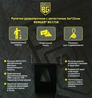 Рулетка 5м*25мм (ударопрочная, автостоп) BERGER BG1758 интересное:
