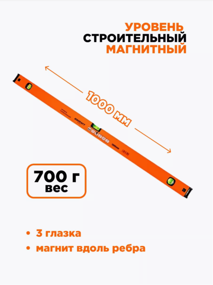 Уровень строительный магнитный OXCRAFT 1000 мм, глазков: 3 интересное: