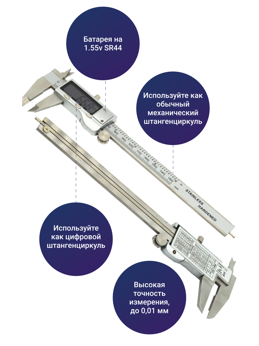 Штангенциркуль цифровой стальной с жк дисплеем 0-150 мм, шаг 0.1 мм, глубиномер интересное: