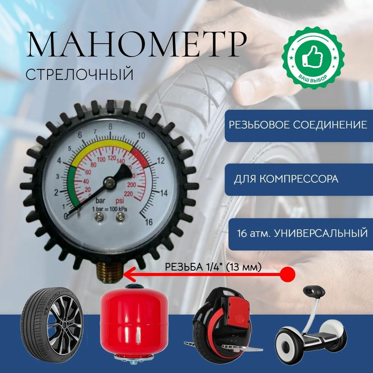 Манометр для шин PG-03 1/4 13мм, измеритель давления интересное: