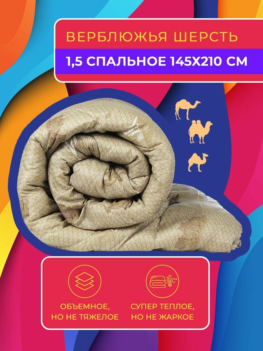 Одеяло теплое зимнее 1.5 спальное 145х210 , верблюжья шерсть интересное: