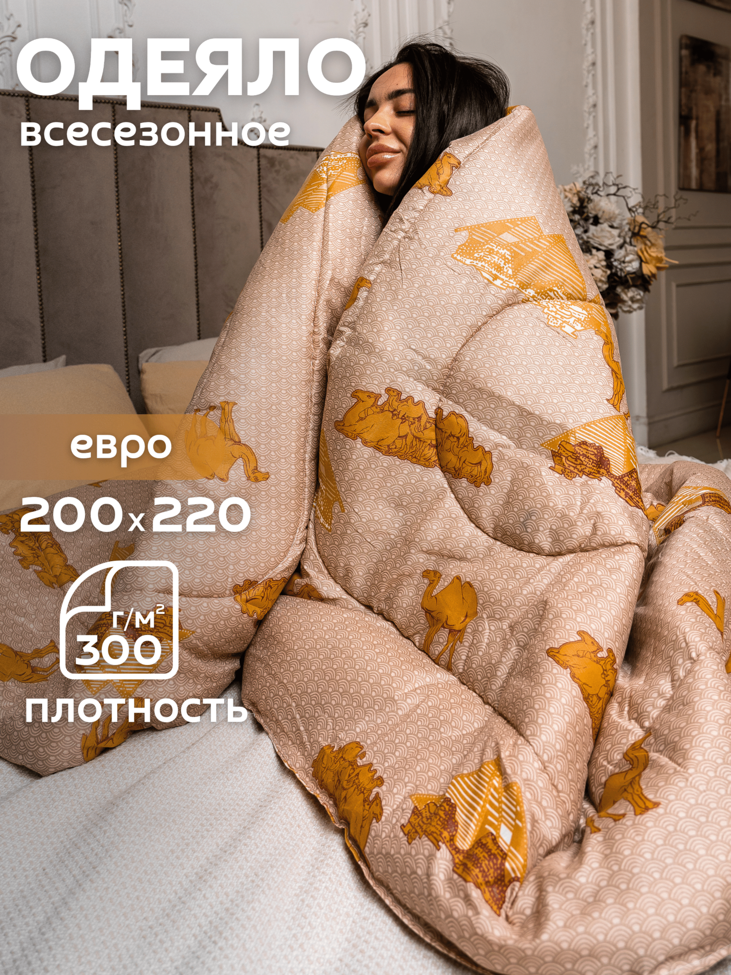 Купить Одеяло евро с верблюжьей шерстью 200х220 см всесезонное легкое и воздушное, одеяло двуспальное PANDASLEEP
