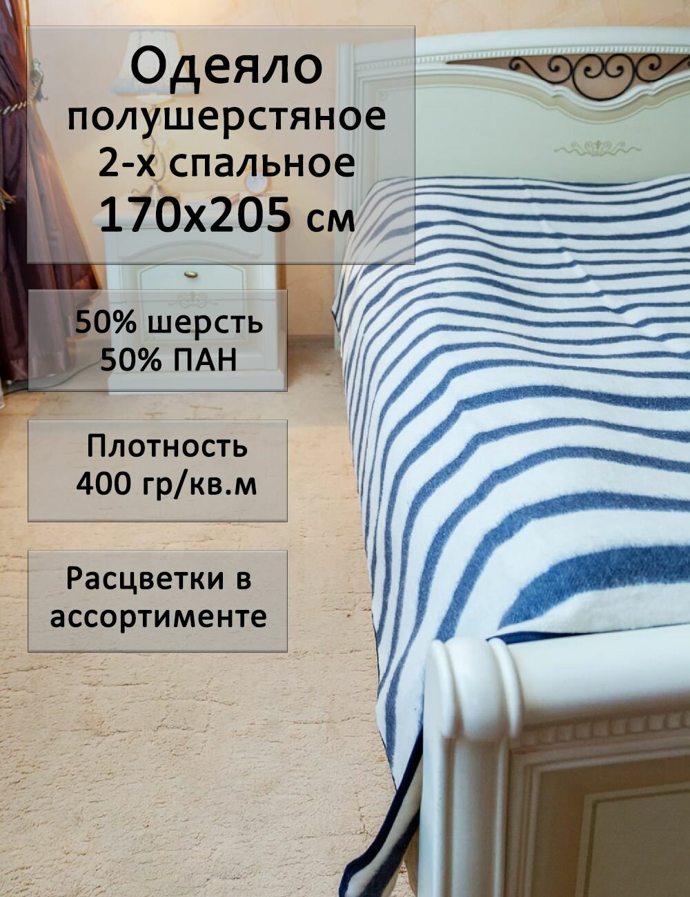 Одеяло двуспальное шерстяное 170х205 см интересное: