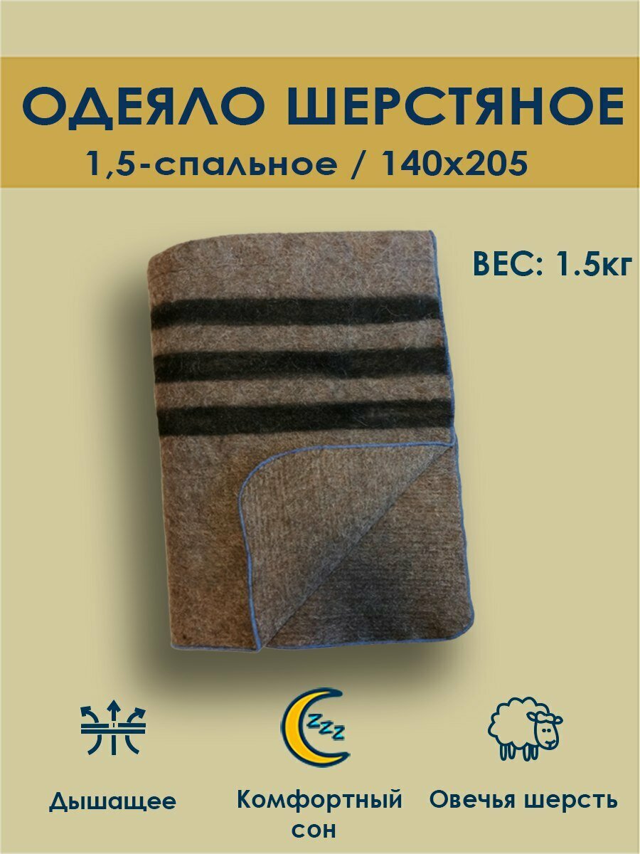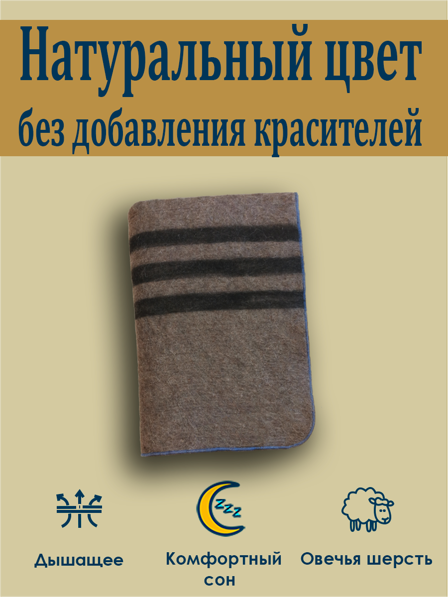Одеяло 1,5 шерстяное, светло-коричневое, всесезонное интересное: