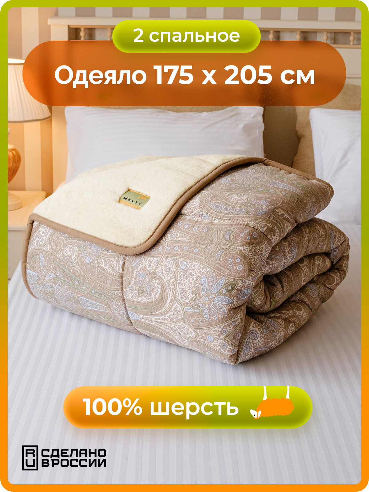 Одеяло теплое из шерсти Классика Этюд 175*205, кофейный
