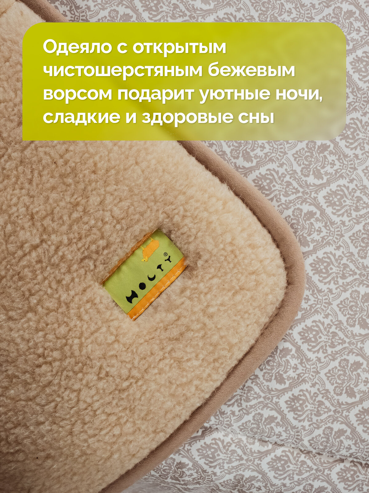 Одеяло теплое шерстяное Холти из овечьей шерсти "Кашмир"(бежевое) 175*205