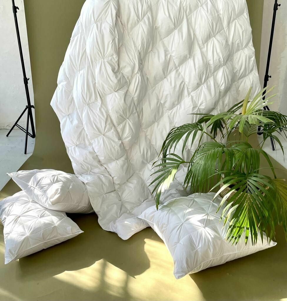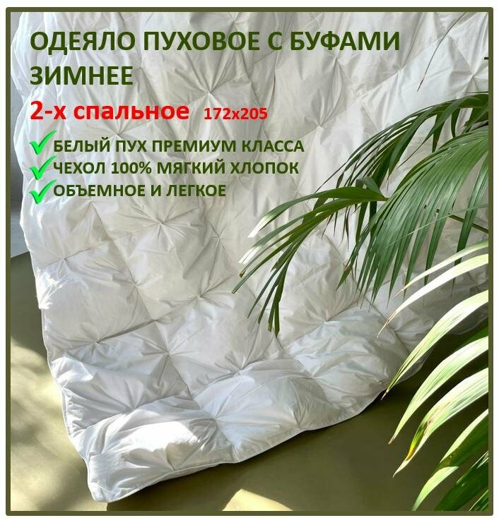 Одеяло пуховое с буфами, из 100% белого пуха, Чехол 100% белоснежный хлопок, 2-х спальное, 172х205 интересное: