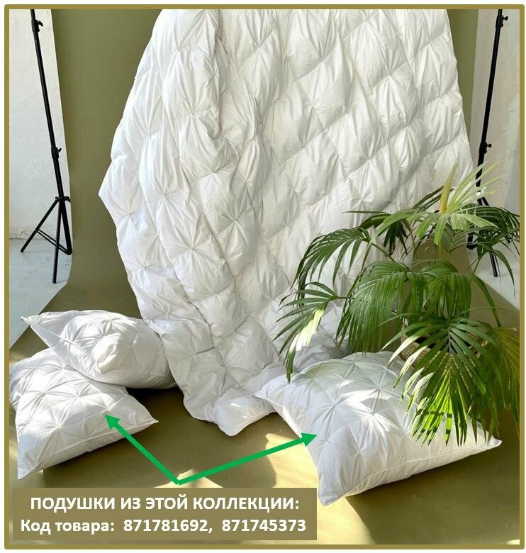 Одеяло пуховое с буфами из 100% белого пуха, Чехол 100% белоснежный хлопок, 1.5 спальное, 150х205 интересное: