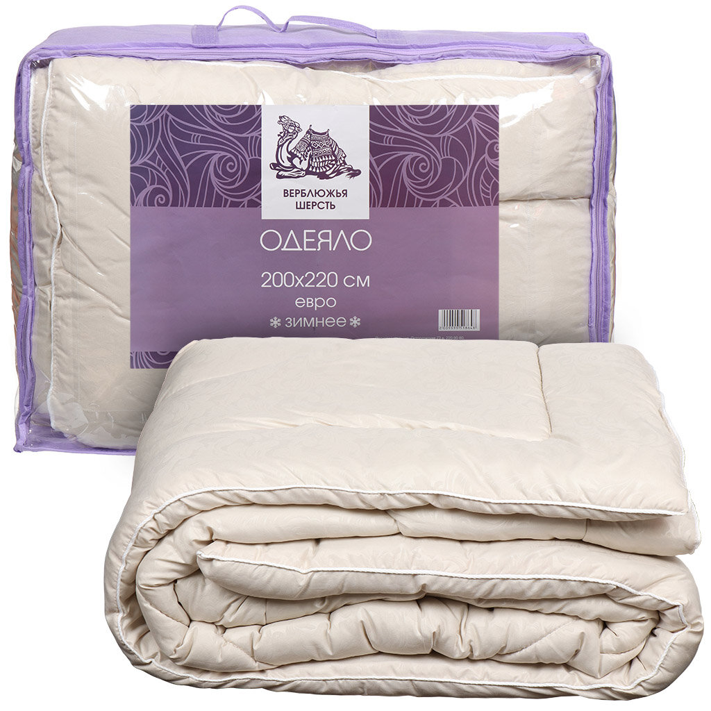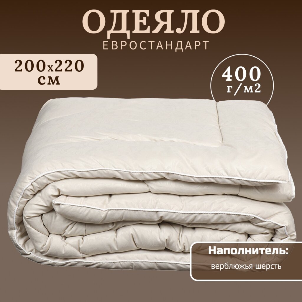 Купить Одеяло евро, 200х220 см, Верблюжья шерсть, 400 г/м2, зимн, чех микрофиб, кант