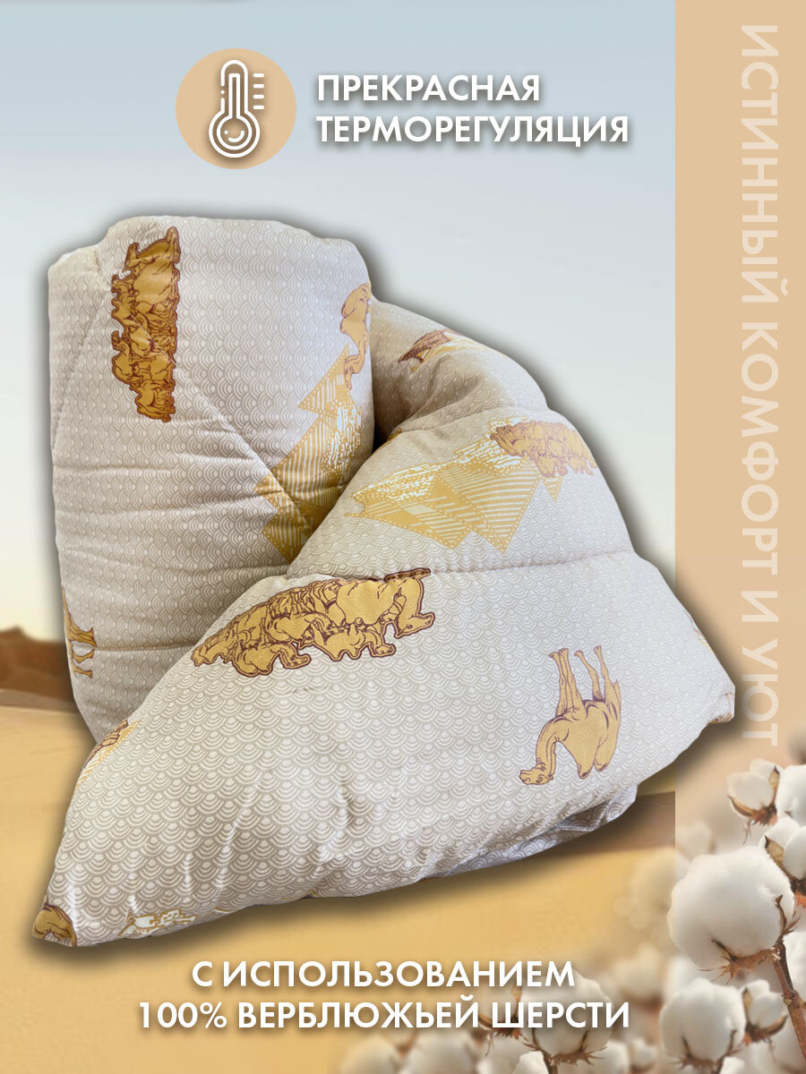 Одеяло двуспальное теплое и легкое для сна зимой и летом 175х210 см с верблюжьей шерстью интересное: