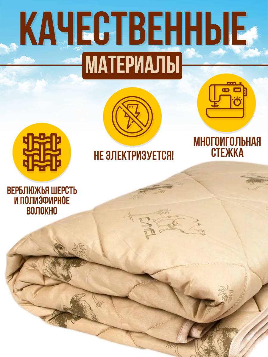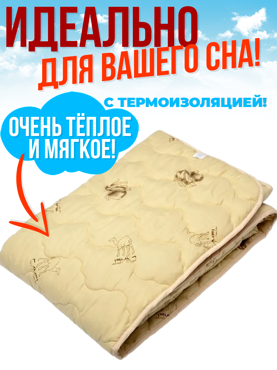 Одеяло Верблюжья шерсть всесезонное 2-спальное 170*205 см. Легкое для сна, для дома, для дачи интересное: