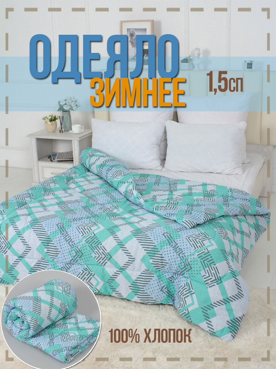 Одеяло зимнее ватное 1.5 спальное зеленый в бязи 100% хлопок