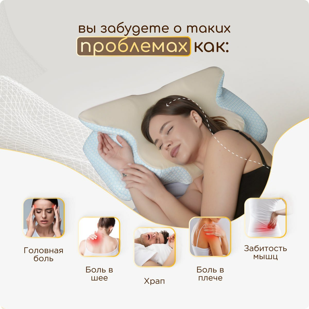 | Особенности | валики разной высоты / гипоаллергенная / охлаждающий эффект / против морщин / съемный чехол / эффект памяти |