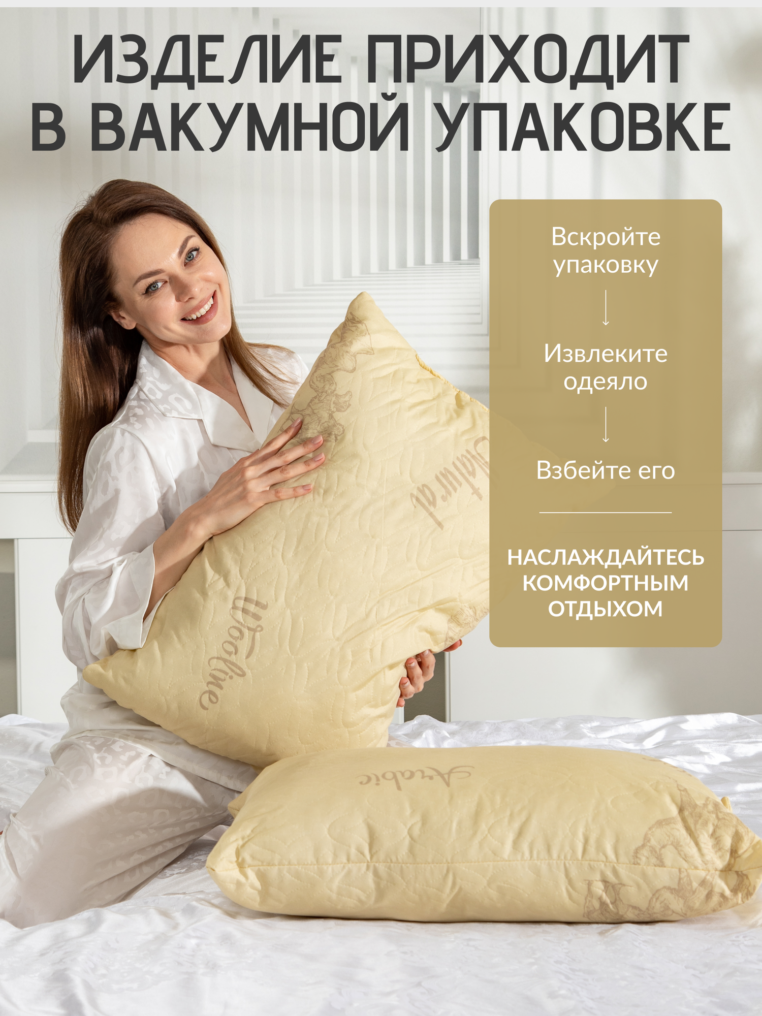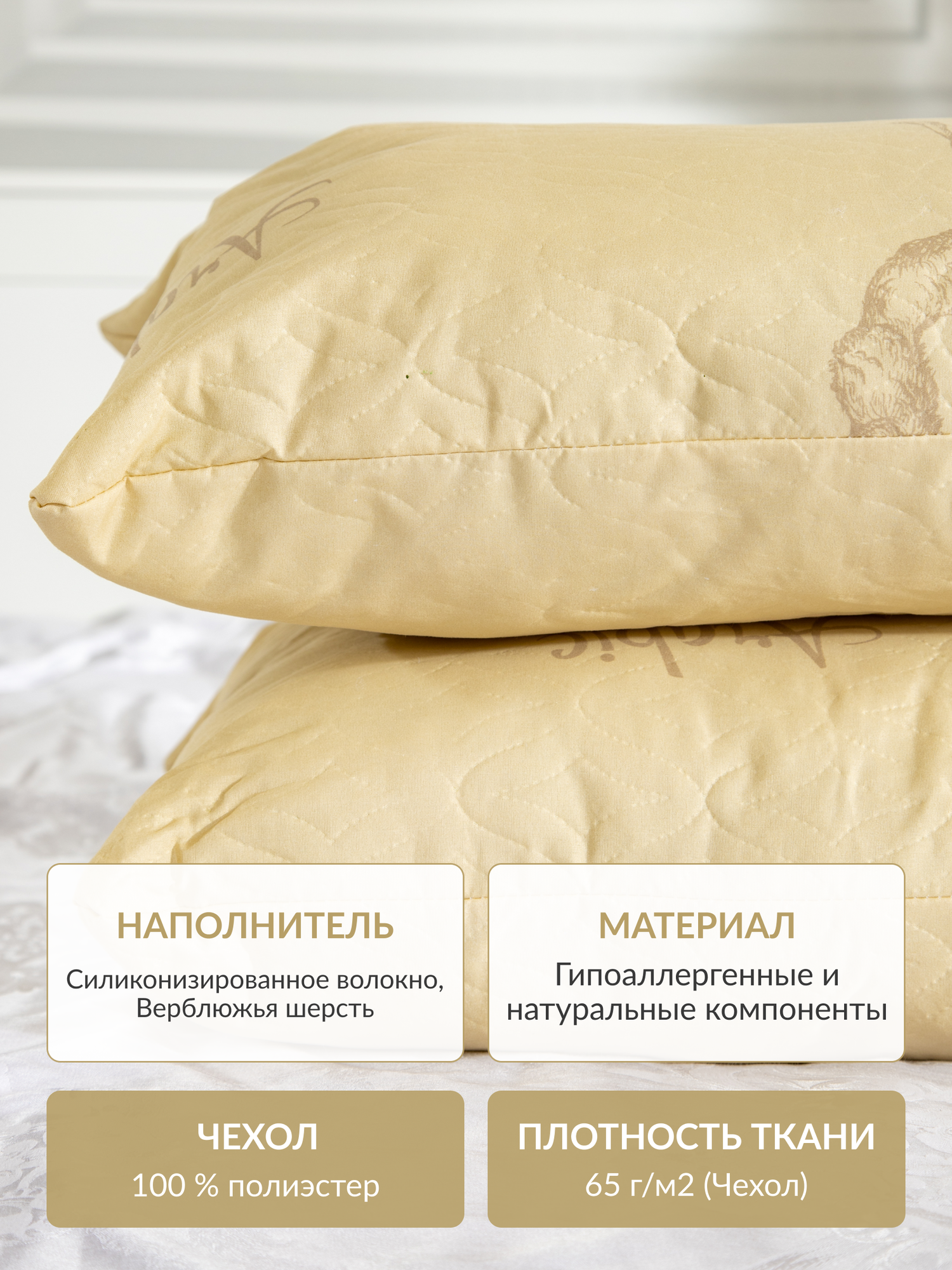Подушка 50x70, чехол: 100 % п/э, наполнитель: верблюжья шерсть, силиконизированное волокно, микроволокно, цвет светло-коричневый интересное:
