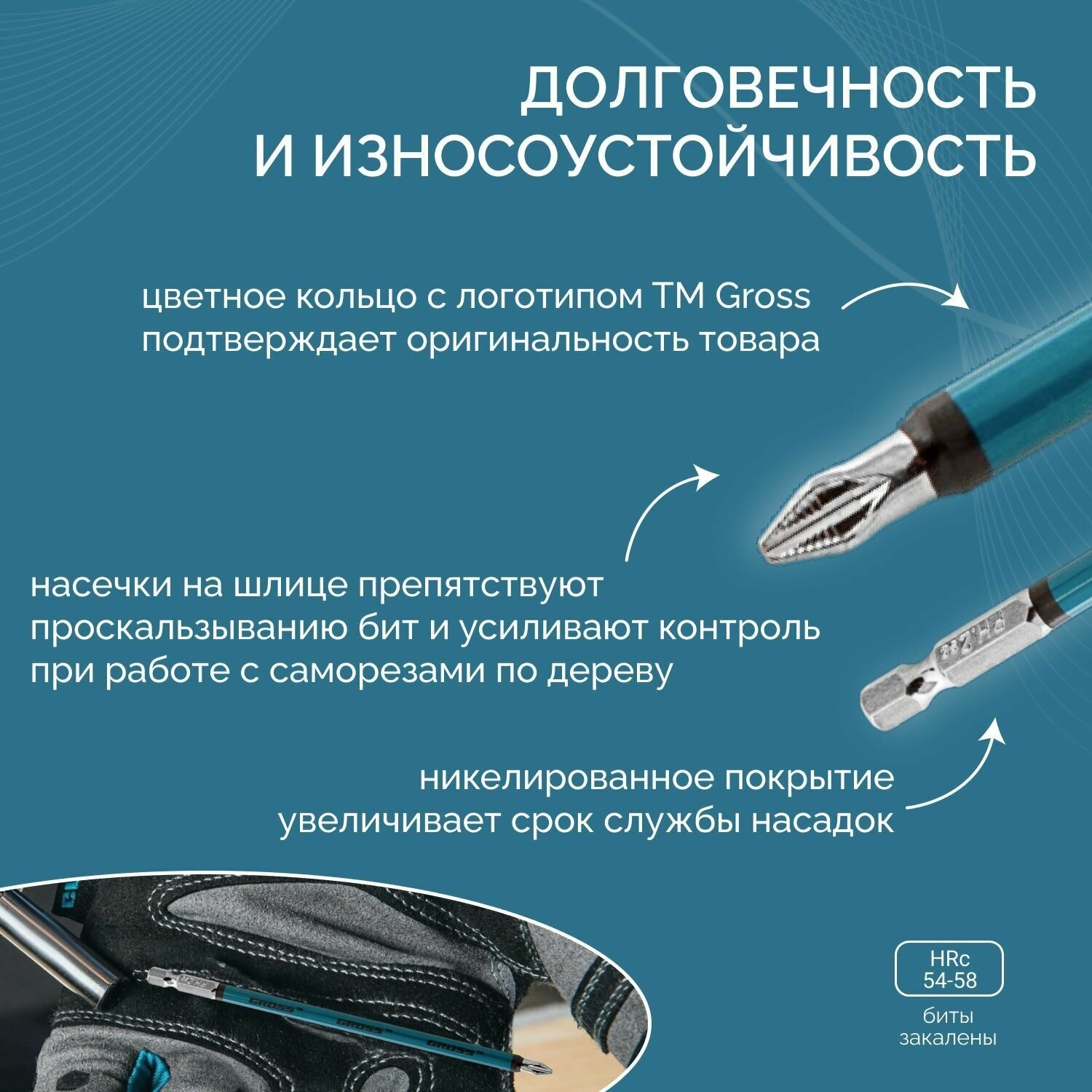 Биты Gross 11203, PH2x150, сталь S2, 5 шт
