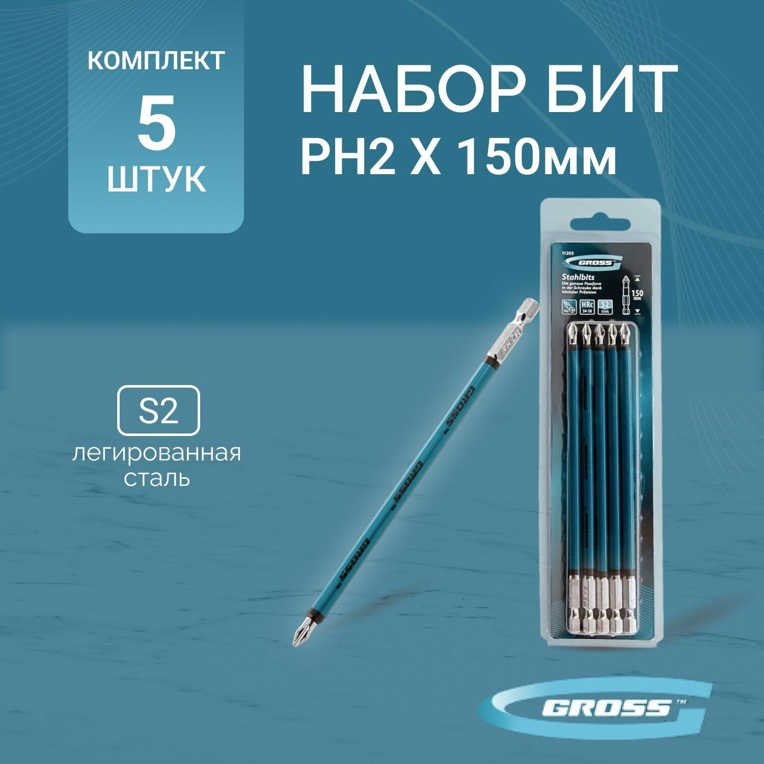 Набор бит PH2 х 150, сталь S2, 5 шт. Gross (11203)