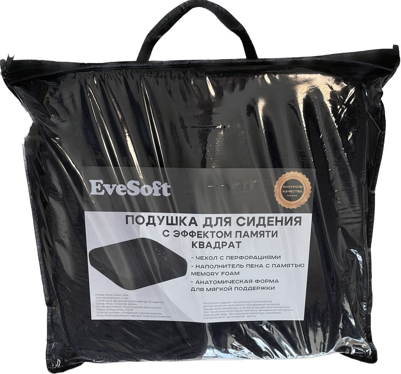 Подушка для сидения с эффектом памяти EveSoft 35х45см, средняя степень поддержки