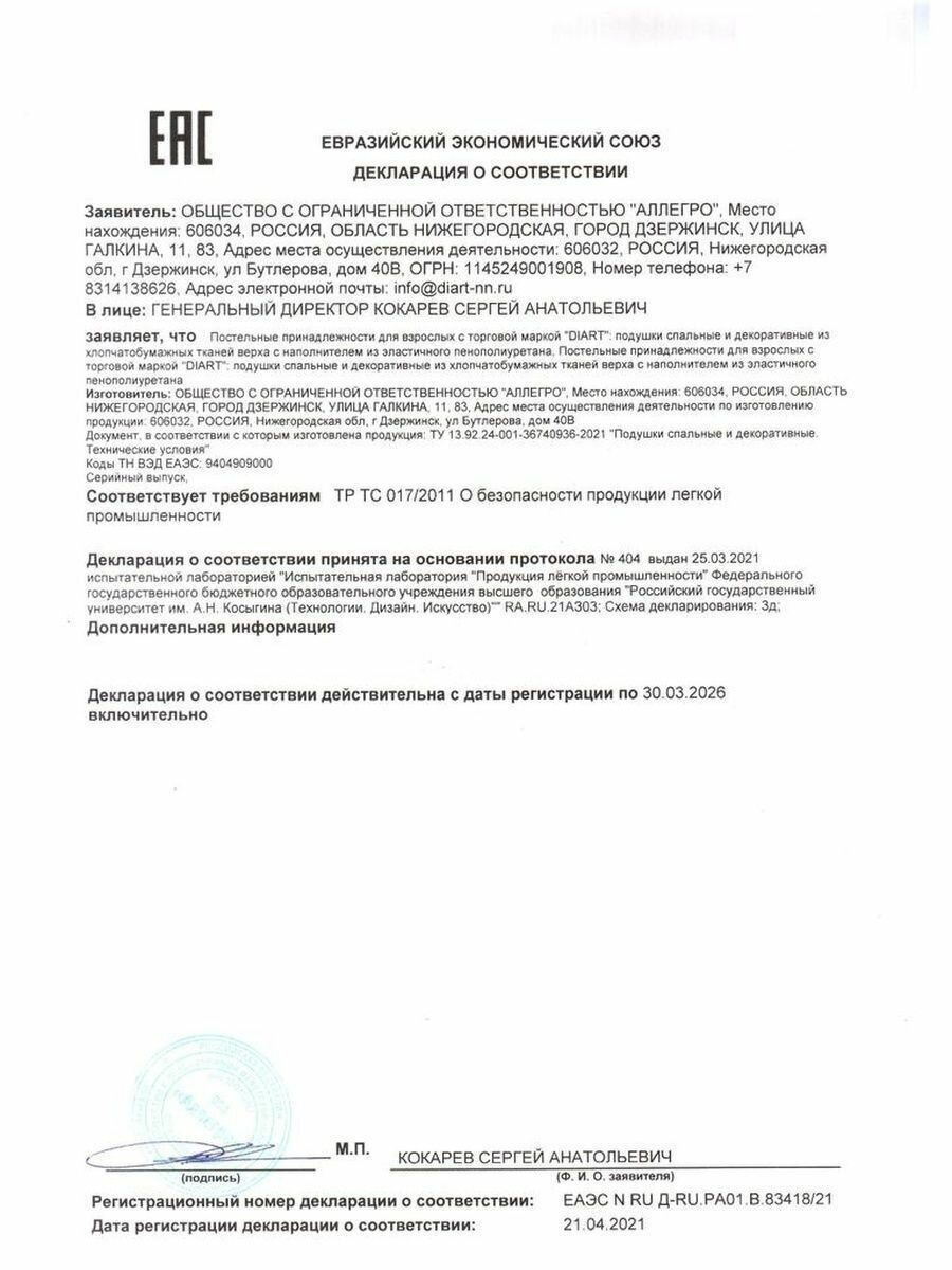 | Тип | подушка |