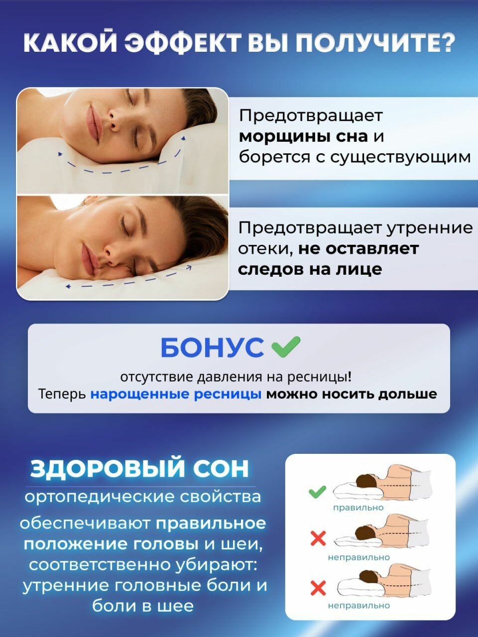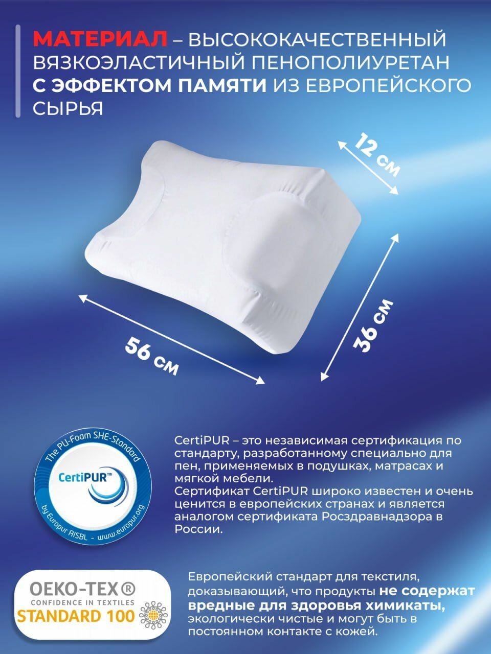 | Особенности | валики разной высоты / гипоаллергенная / против морщин / съемный чехол / эффект памяти |