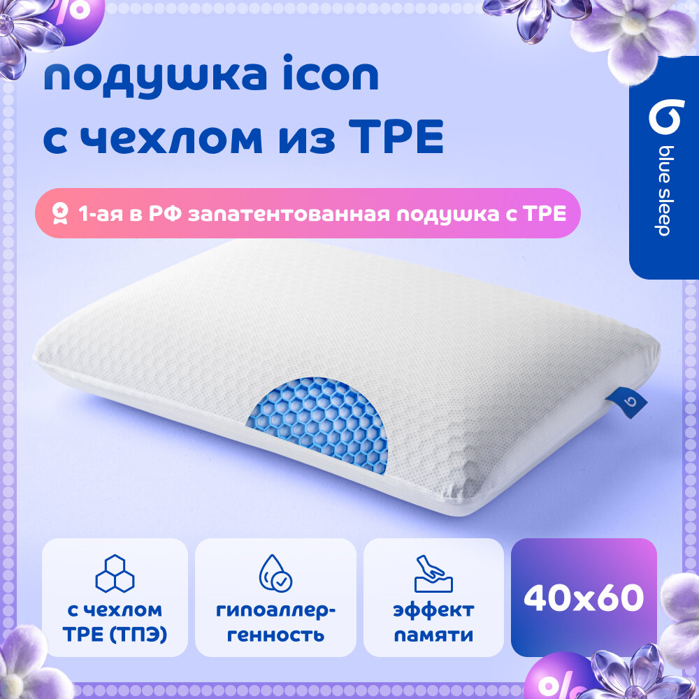 Blue Sleep Icon Ортопедическая мягкая подушка для дома и сна 40x60см с эффектом памяти, высота 13 см с чехлом из TPE интересное: