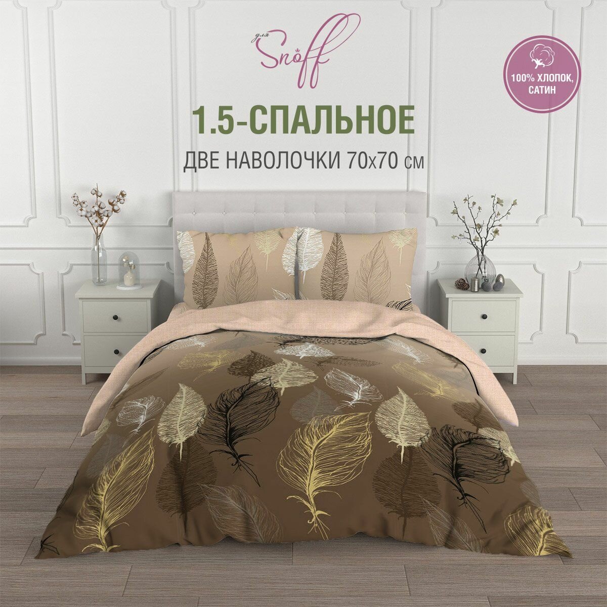 Постельное белье 1,5-спальный Для SNOFF сатин Селемо/ хлопок / наволочки 70*70/1,5 спальный