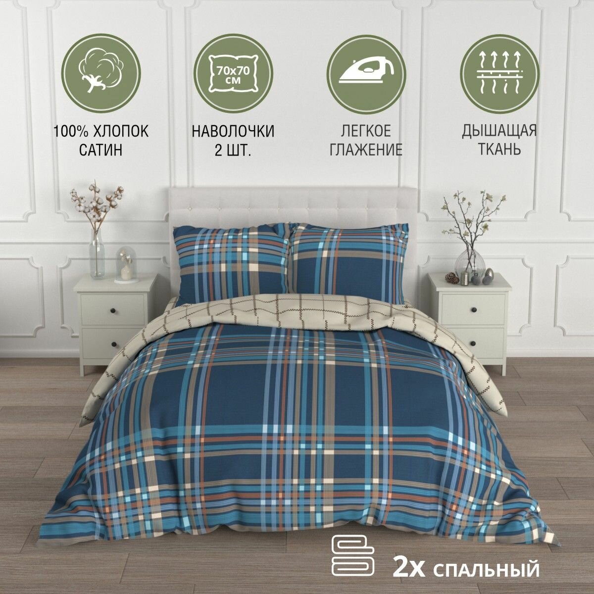 Постельное белье 2 спальное Для SNOFF сатин/ Мави / хлопок / наволочки 70*70