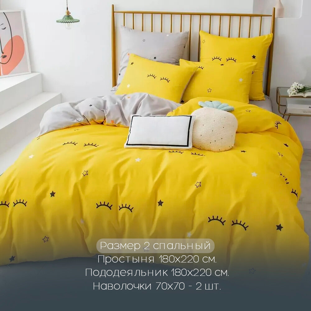 СохранитьПостельное белье Сатин 2 спальный с простыней на резинках по углам Наволочки 70x70 Хлопок Aimee SAYA HOME Желтый интересное: