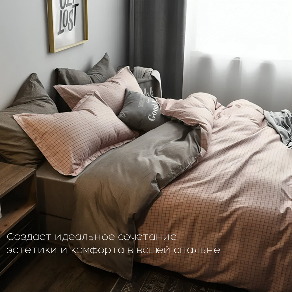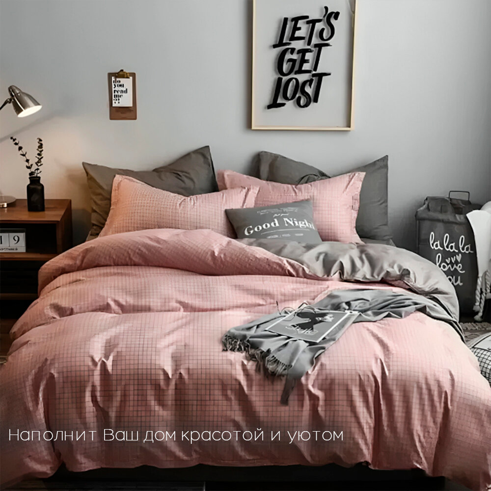 Постельное белье Сатин 2 спальный с простыней на резинках по углам Наволочки 70x70 Хлопок Aimee SAYA HOME Серо-розовый
