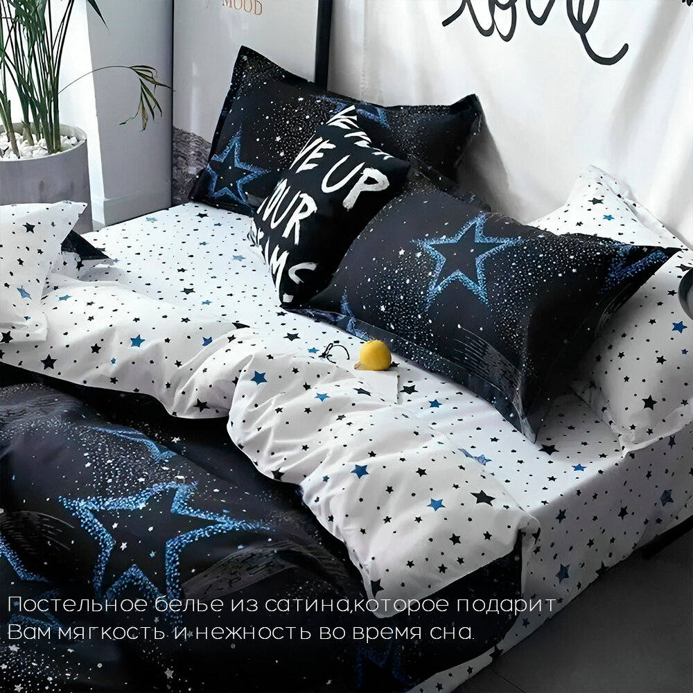 Постельное белье Сатин 2 спальный с простыней на резинках по углам Наволочки 70x70 Хлопок Aimee SAYA HOME Звезды.