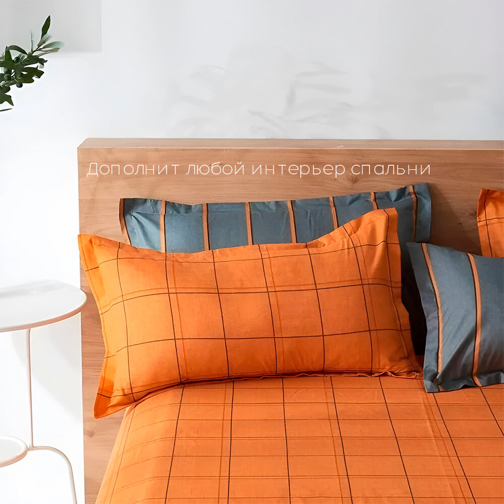 Постельное белье Сатин 2 спальный с простыней на резинках по углам Наволочки 70x70 Хлопок Aimee SAYA HOME Оранжевый