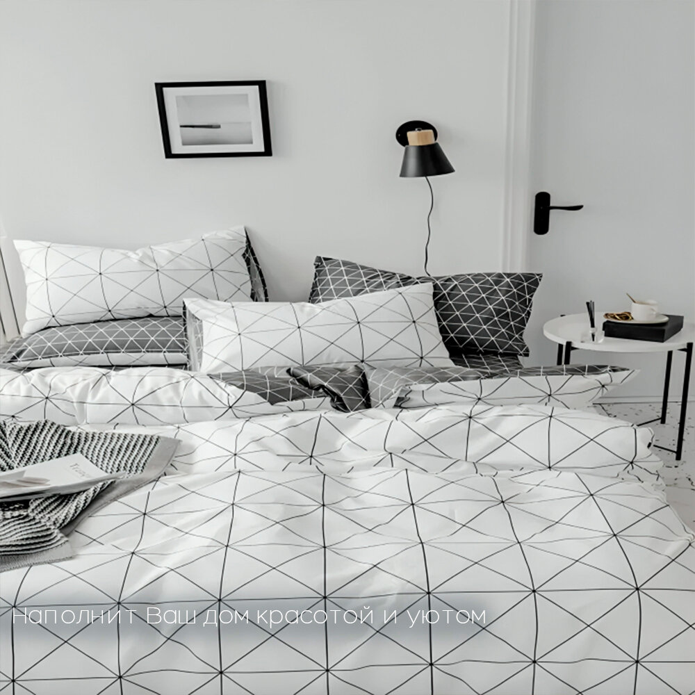 Постельное белье Сатин 2 спальный с простыней на резинках по углам Наволочки 70x70 Хлопок Aimee SAYA HOME Зигзаг