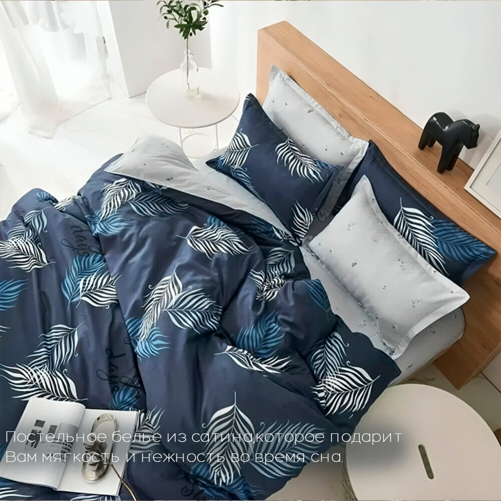 СохранитьПостельное белье Сатин 2 спальный с простыней на резинках по углам Наволочки 70x70 Хлопок Aimee SAYA HOME Темно-синий. интересное: