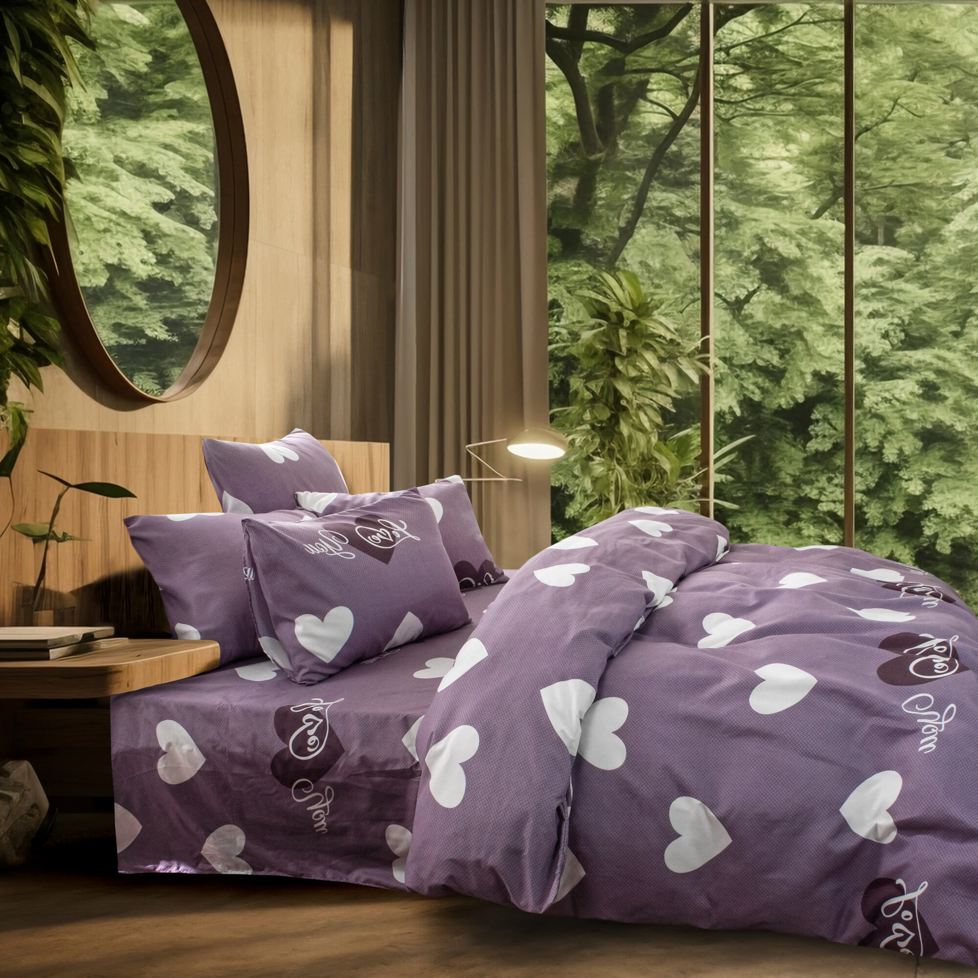 Купить Постельное белье семейное с сердечками Cleo Art Color комплект с двумя пододеяльниками