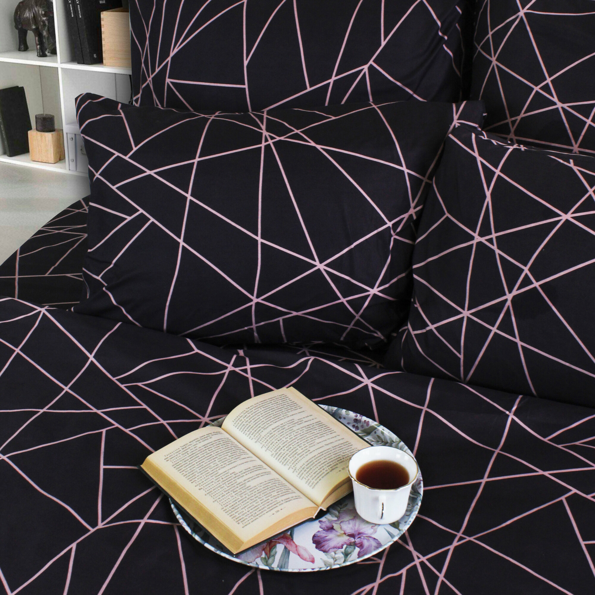 Постельное белье евро с геометрическим принтом Cleo Art Color комплект из полисатина, наволочки 50х70 и 70х70