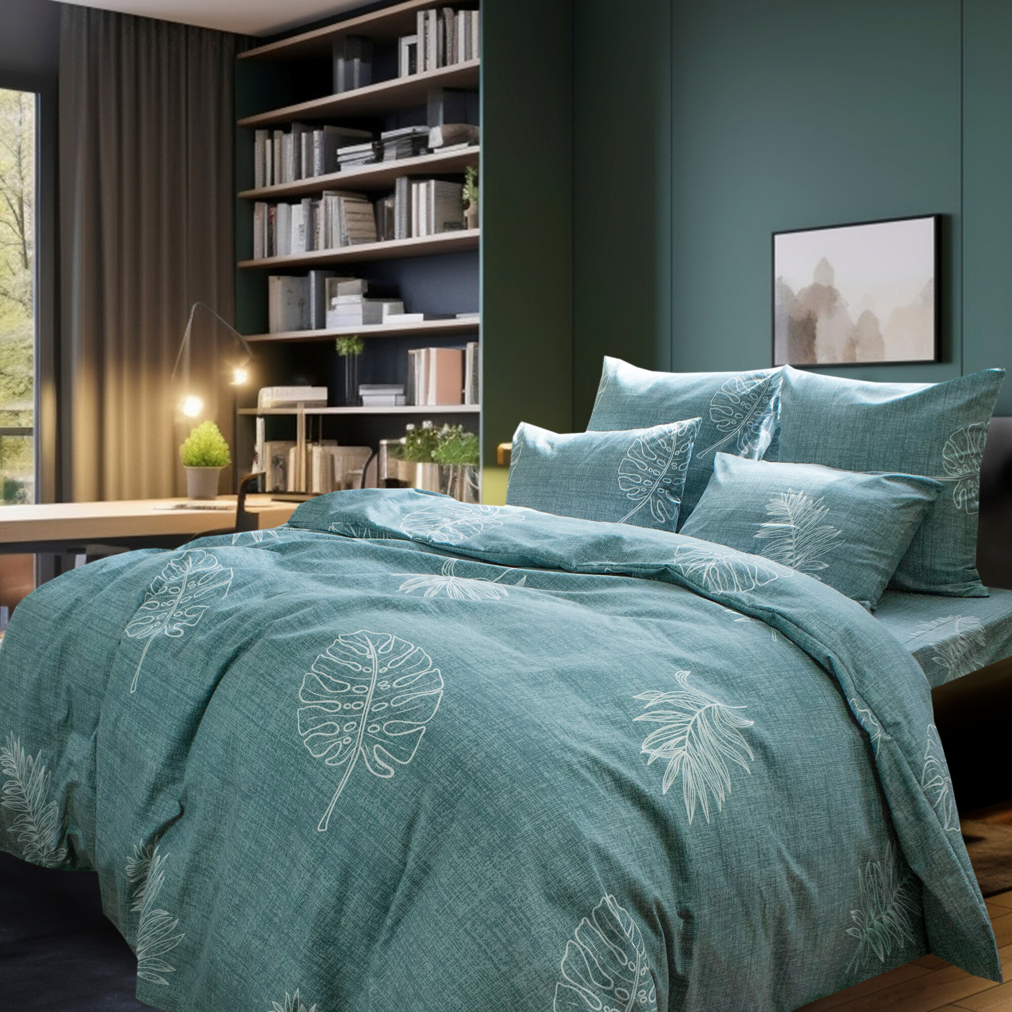 Постельное белье бирюзовое 1.5 спальное Cleo Art Color комплект полисатин, наволочки 70х70