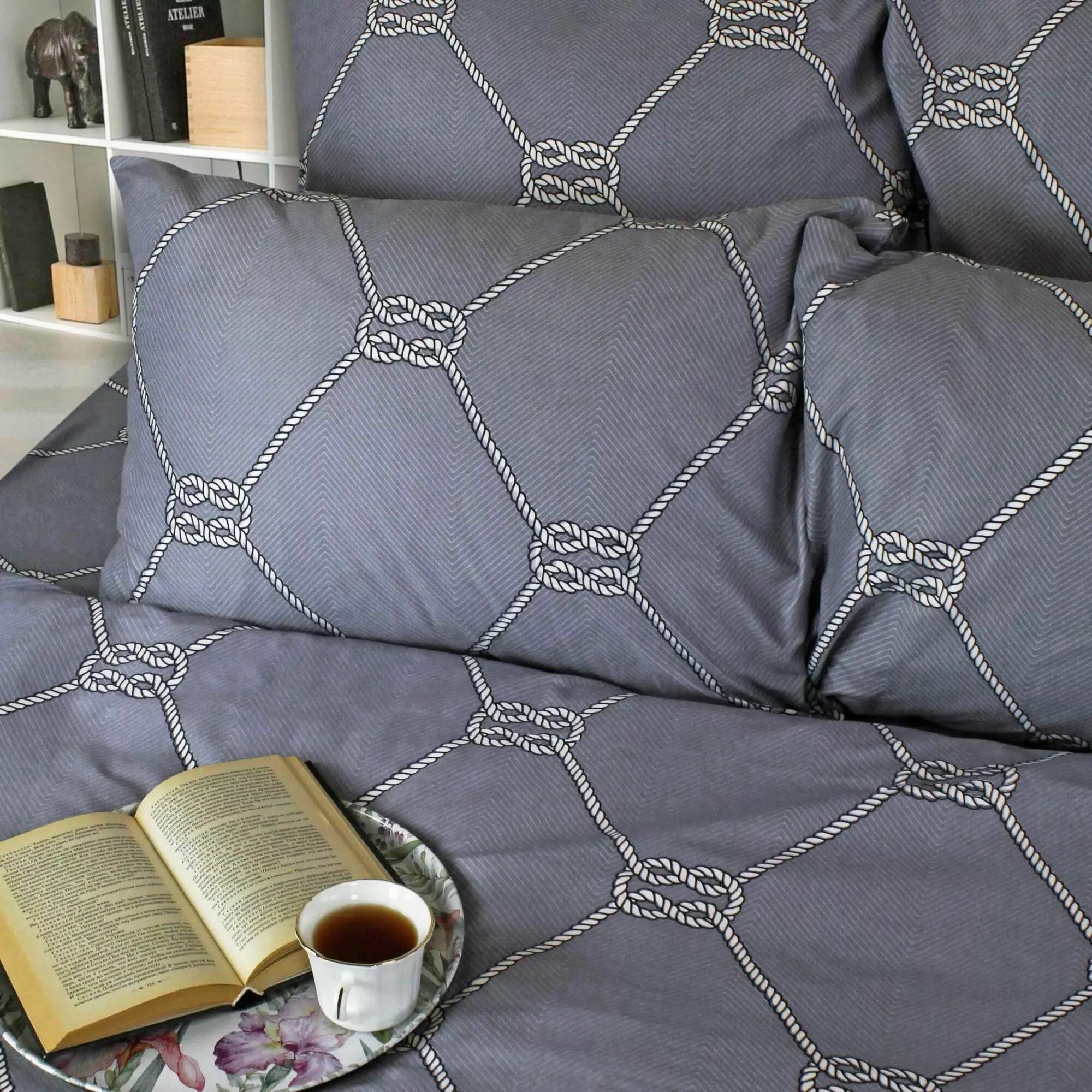 Постельное белье из полисатина 275-AC Cleo (серо-синий), 2,0 спальный (наволочки 70x70)